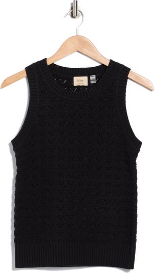Dainty pointelle stitches enhance the charm of this crewneck sweater-tank knit from soft, breathable cotton-blend yarns.
