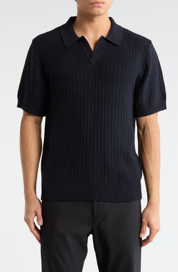 A Johnny collar sharply frames this knit polo crafted from cotton and cashmere yarns in a textured pattern that keeps you comfortable at the office or out on the town.
