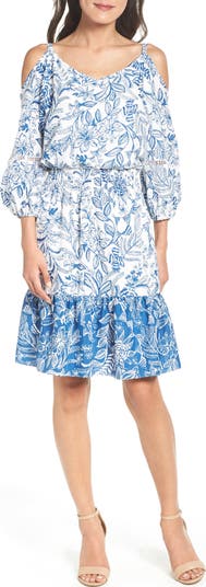 Look as fresh as the season in this cold-shoulder dress that frames the face, defines the waist and flutters as you move.