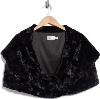 Add a layer of classic glamour to your special look with a lush faux-fur capelet, styled with a shawl collar.