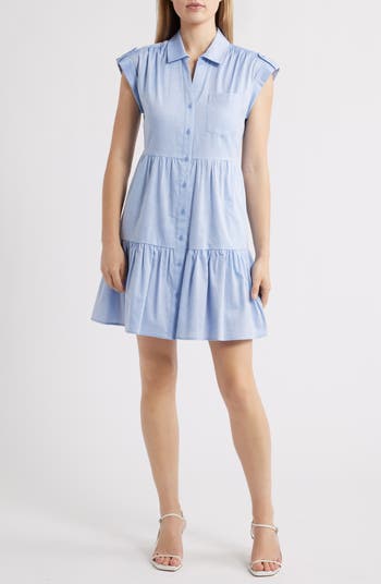 A flowy tiered silhouette complements the lightweight cotton design of this shirtdress that's the perfect addition to your warm-weather wardrobe.
