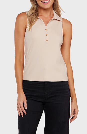 Stay cool on sunny days in this lightweight woven polo tank styled with a breezy sleeveless design.