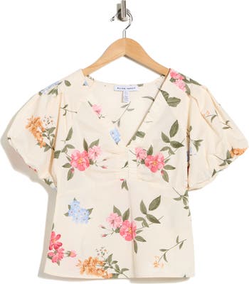 Puffy sleeves and a vibrant floral pattern fuel the romantic appeal of a top made from pure, breathable cotton.