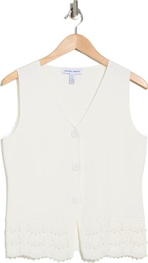 Beaded embellishments and dainty pointelle stitches define a sweater-vest that brings an elevated touch to layered looks.