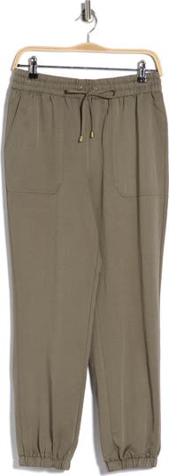 Roomy pockets bring utility-inspired style to these lightweight joggers framed by a comfortable elastic-drawstring waist and elastic cuffs.