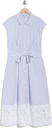 Easily go from the farmers' market to weekend brunch in this pure-cotton shirtdress cinched with a tie belt and finished with floral lace.