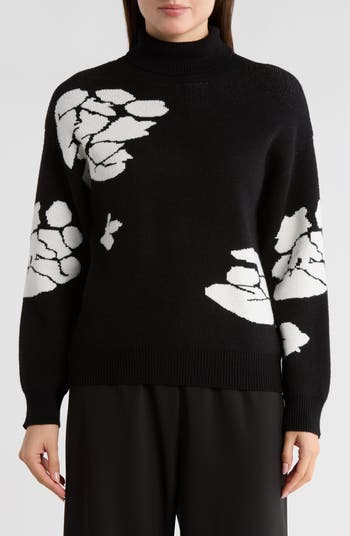 Perfect for solo or layered wear, this turtleneck sweater boasts jacquard flowers along the sides and sleeves.