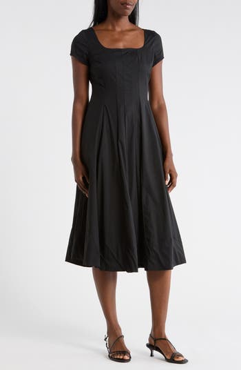 Crisp, breathable poplin gives this square‑neck dress a polished feel, finished with cap sleeves for a clean, modern silhouette.
