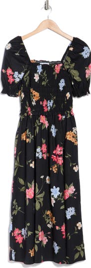 Easily go from the farmers' market to weekend brunch in this pure-cotton fit-and-flare midi covered in blooms and framed by romantic puff sleeves.