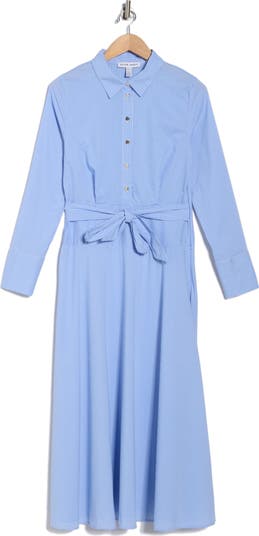 Striped, stretchy cotton poplin adds crisp charm to this long-sleeve shirtdress perfect for work-to-weekend looks.