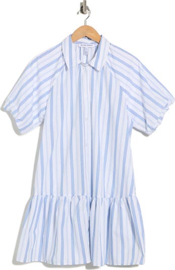 Deep blue stripes bring coastal-inspired styling to this weekend-ready shirtdress cut from breathable cotton poplin.