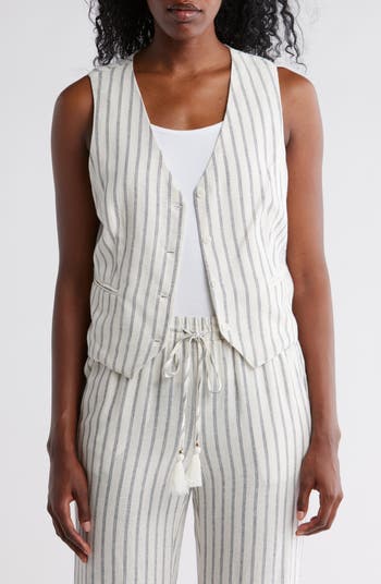 Complete a polished look with this striped button-front vest cut from lightweight linen-kissed fabric for breathable comfort.