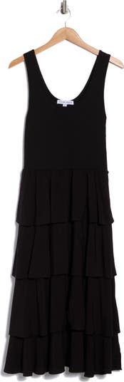 A soft ribbed bodice balances a gracefully tiered skirt on this mixed-media tank dress that's perfect for warm days.