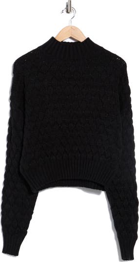Bubbly stitches enhance the cozy feel of this mock-neck pullover sweater knit in a slouchy, cropped silhouette that's easy to layer.