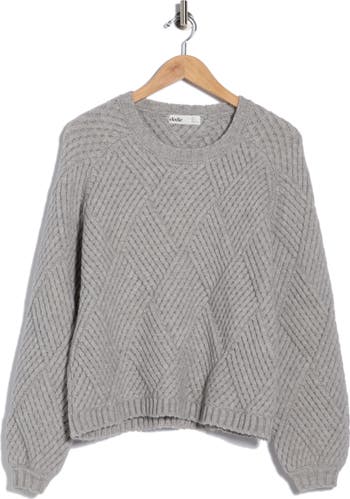 A diamond-knit pattern adds textural charm to this cozy sweater framed by billowy sleeves.