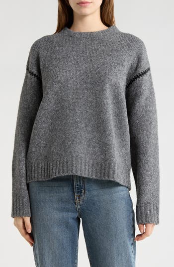 Knit with contrast stitching in a drop-shoulder silhouette, this crewneck sweater is a chic cold-weather essential.