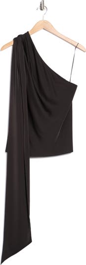 An attached sash enhances the elegant style of this one-shoulder top cut from soft stretch satin.
