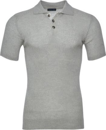 A slim fit elevates the dapper charm of this short-sleeve polo knit from merino wool in a vertical rib pattern.