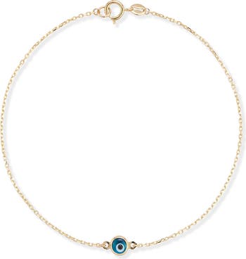 Ward off bad vibes in style with this 14k-gold bracelet featuring an evil eye charm.