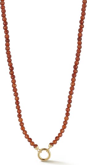 A polished 14-karat gold ring grounds this necklace composed of faceted beads or lustrous freshwater pearls.
