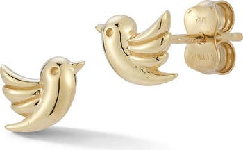 Crafted from 14k gold, these bird studs add a whimsical touch to your lobe look.