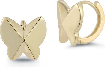 Crafted from 14k gold, these butterfly huggie hoop earrings add whimsical flair to your lobe look.