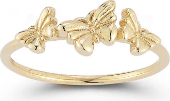 Add a whimsical touch to your ring stack with this 14k-gold band featuring a butterfly accent.
