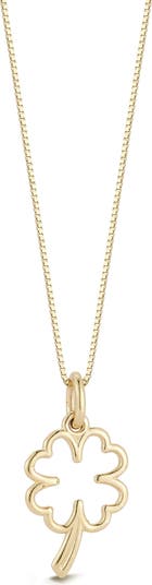 Bring some luck to your everyday ensembles with this box-chain necklace crafted from warm 14-karat gold and suspending an open-clover pendant.