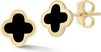 Clover-shaped enamel inlays add a contemporary touch to these dainty stud earrings crafted from warm 14-karat gold.
