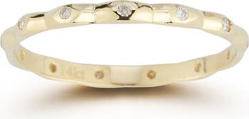 Round white diamonds sparkle around the slender band of this 14-karat gold ring perfect for solo or stacked wear.