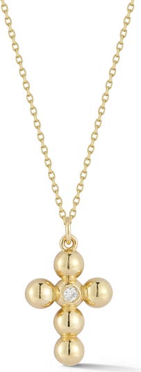 14K Gold Diamond Beaded Cross Pendant