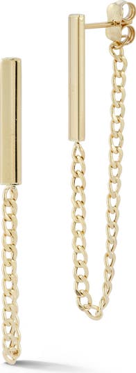 A draped curb chain anchors these bar earrings crafted from 14-karat gold.