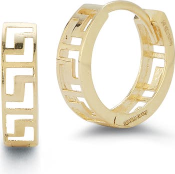 14K Gold Greek Keys Huggie Hoop Earrings