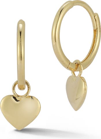 Crafted from 14k gold, these hoop earrings feature heart drops that add a lovely touch to your lobe look.