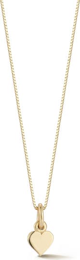 A dainty polished heart pendant grounds this box-chain necklace crafted from warm 14-karat gold for lovely shine.