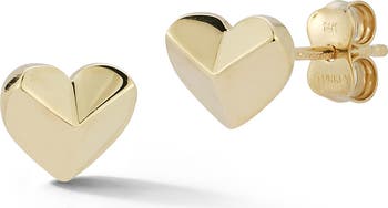 Bring a hint of lovely gleam to your lobes with these dainty heart studs crafted from warm 14-karat gold.
