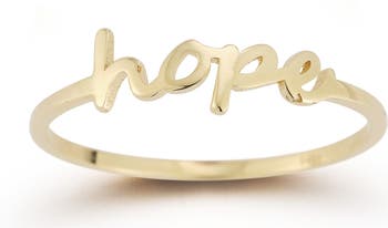 A scripted 'hope' design tops the band of this dainty ring crafted from gleaming 14-karat gold.