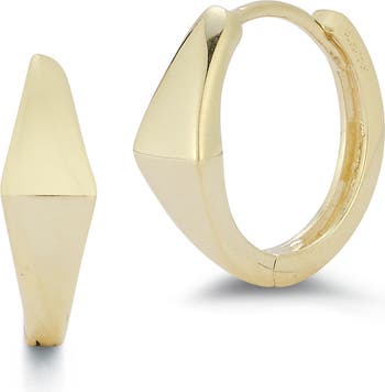 Crafted from 14k gold, these geometric huggie hoop earrings add eye-catching dimension to your lobe look.