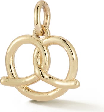 Treat yourself to this 14-karat gold pretzel charm that will make a whimsical addition to your favorite chain.