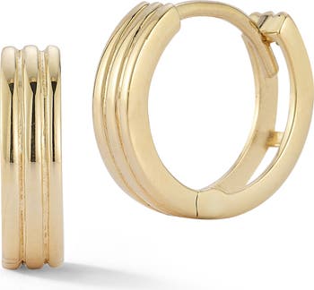 Crafted from 14k gold, these ribbed huggie hoop earrings add eye-catching dimension to your lobe look.