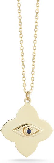 14K Gold Sapphire Evil Eye Pendant Necklace