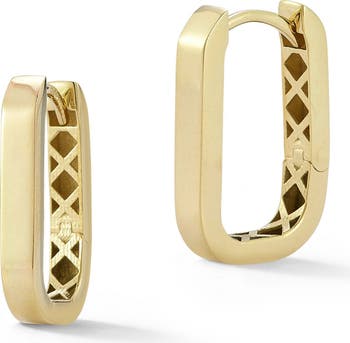 A squared-off oval silhouette adds contemporary shine to these wear-with-anything hoop earrings crafted in Italy from gleaming 14-karat gold.