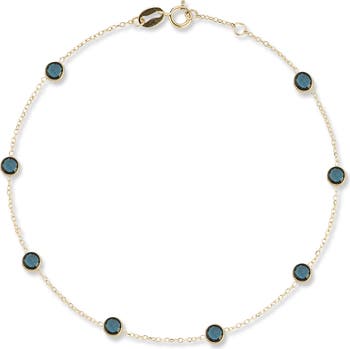Faceted stones station around a dainty chain to form an eye‑catching anklet crafted from warm 14‑karat gold.