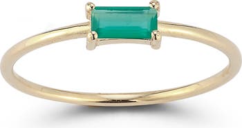 Bring a subtle pop of color to your finger with this slender 14-karat gold ring showcasing an emerald-cut stone.