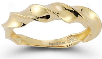 A twisted silhouette catches light at each and every angle on this slender band ring crafted from fine 14-karat gold.