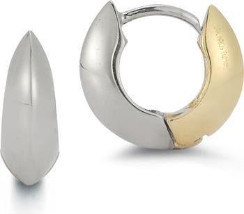 14K Gold Two-Tone Huggie Hoop Earrings