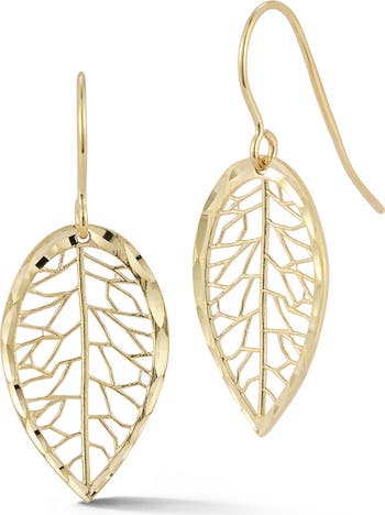 Add a touch of playful appeal to your lobe look with these 14k-gold earrings with leaf drops.