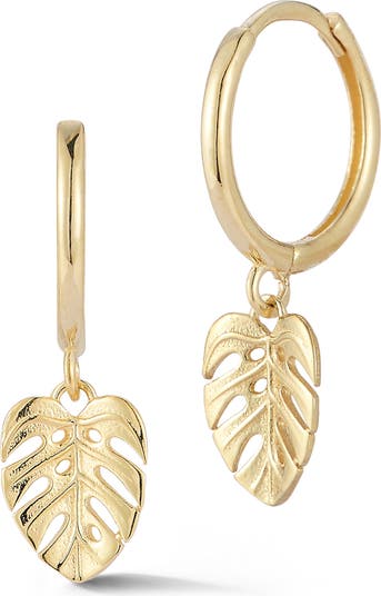 Crafted from 14k gold, these huggie hoop earrings feature a leaf drop that adds a playful touch to your lobe look.