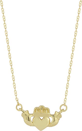 A Claddagh necklace crafted in 14-karat yellow gold is a must-have staple for your collection.