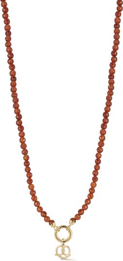 Faceted semiprecious stone beads bring a pop of color to this dainty necklace suspending a removable pretzel charm.